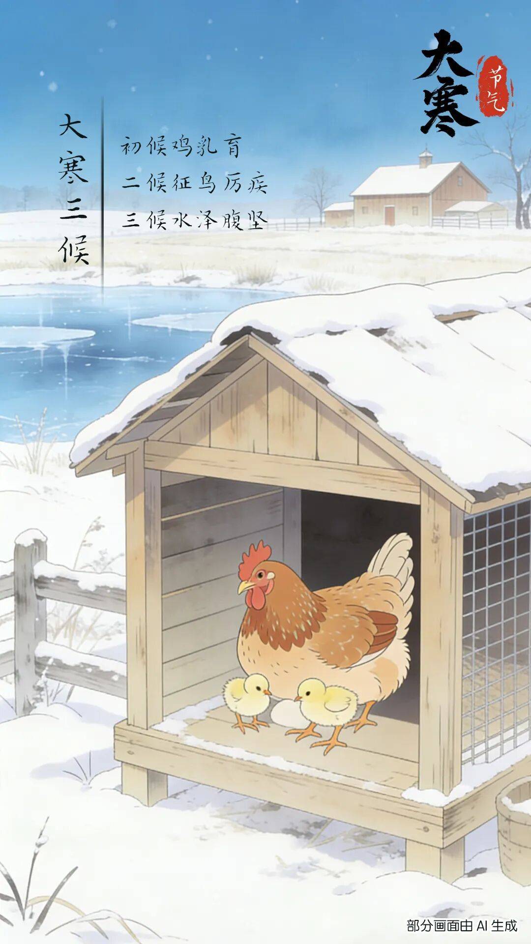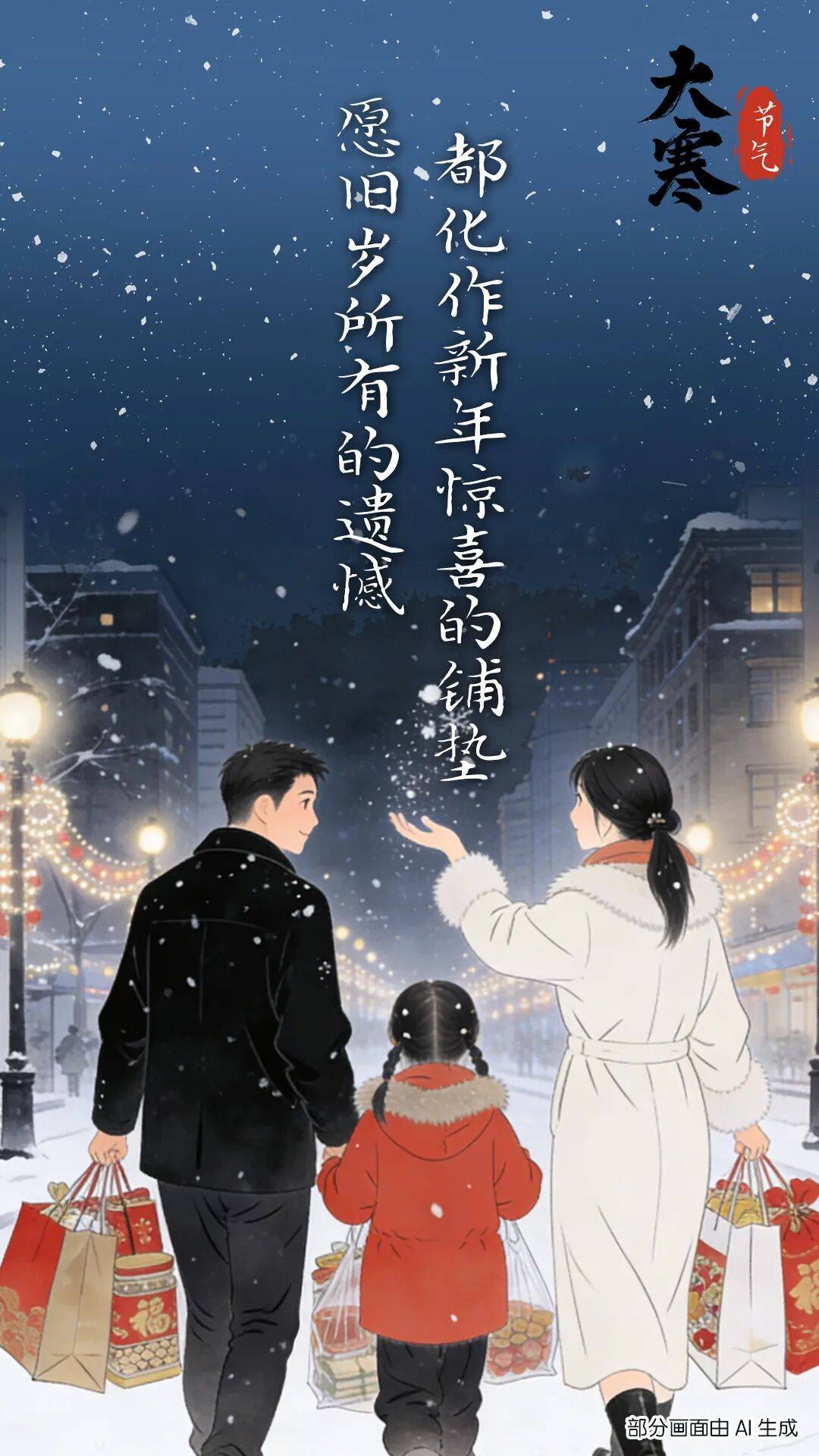 大寒时节,气温较低,要注意防寒保暖,随温度变化及时增减衣物,尤其注意头部、手部和脚部的保暖。