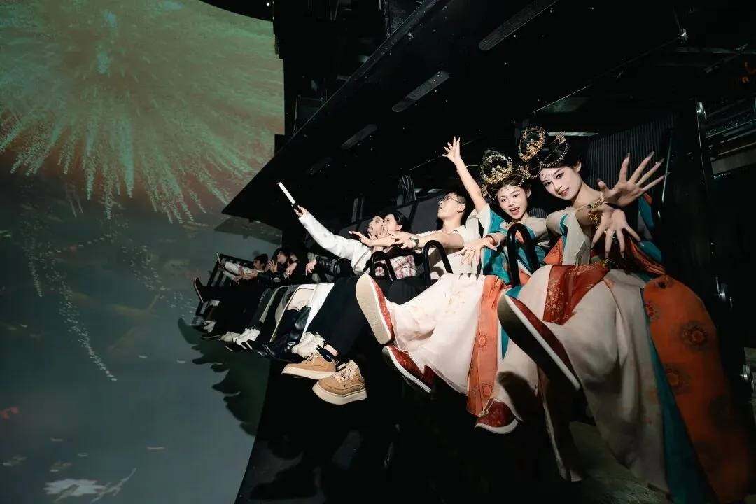 如果说街景与商品构建了诗意的表层,那么位于不夜城街区中央的曲江飞行剧院则揭开了沉浸式体验的新篇章。
