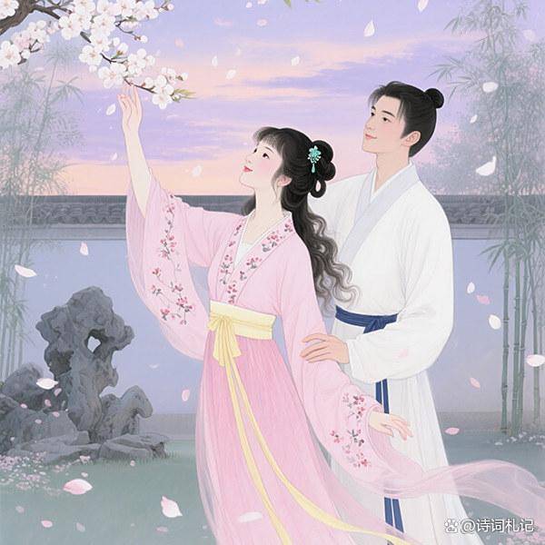 词的开篇以回忆起笔,勾勒出一幅春光明媚、情意缱绻的画面。“记得”引入回忆,“春未暮”点明时间,正是繁花似锦、生机盎然的时节,也暗喻两人爱情的初绽与美好。