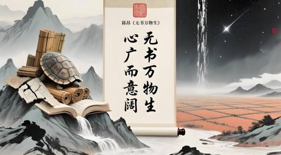《无书万物生》以开阔视野解答“什么是书”,既肯定了“无数本书”衍生万物的根基作用,又跳出有形书籍的桎梏,借“无书”指向生命本真的鲜活。“甲骨简牍/破晓混沌的天地/竹纸丝帛/唤醒沉寂的星河”追溯书籍的演变,从古老甲骨到竹纸丝帛,书籍始终是文明的载体。但诗歌并未止步于此,“仄仄平平/变幻成澄明的阡陌”暗示文字与书籍最终是通往真理的路径,而非真理本身。“人间没有一本具体的书/能抵过生命本真的鲜活”给出颠覆性答案,真正的“书”不在纸页之间,而在“水生沧浪山生巍峨”的自然中,在“阴阳轮转众生蹉跎”的生命里。结尾“心广而意阔”点出精髓,当心灵通透、感知鲜活,万物皆可为书,这种对“书”的升华理解,极具哲思深度。