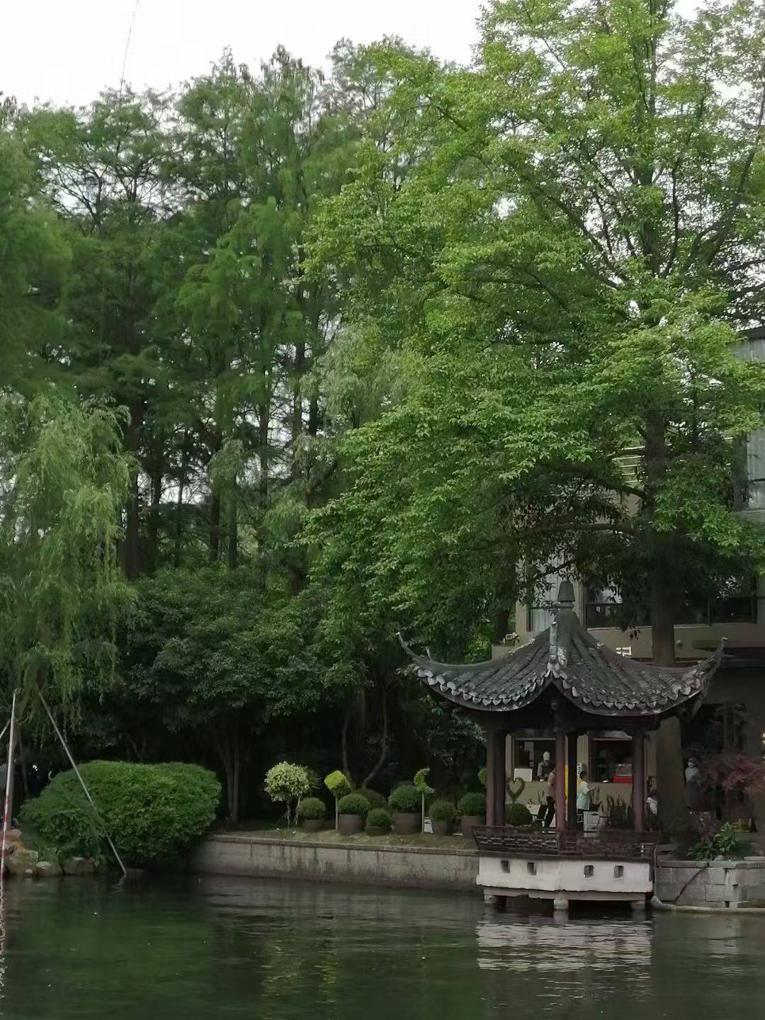开篇破题,奠定基调:“明月浸寒碧,夜色满西湖”以极简的笔墨点出核心场景,“浸”字将月光与湖水交融的质感刻画得淋漓尽致,“满”字则把夜色的浓郁铺陈开来,瞬间将读者拉入清冷又静谧的西湖月夜。“画船飘曲徐行,惊起宿鸥凫”增添了画面的动态感,悠扬的曲声、缓缓移动的画船,突然惊起的水鸟,打破了夜色的沉寂,却又因“徐行”“惊起”的舒缓节奏,让整幅画面更显生动鲜活。“遥看三潭印月,恰似明珠嵌玉,光影动清琚”把西湖标志性景观三潭印月具象化,用“明珠嵌玉”的比喻凸显其精致典雅,“光影动清琚”则用拟声词模拟光影晃动的清脆感,让静态的景致有了声音的灵动。“更有雷峰影,斜照水云居”以雷峰塔的倒影收束上阕,将人文建筑融入自然夜色,“斜照”二字让画面有了层次,“水云居”则为西湖增添了几分缥缈的仙气。