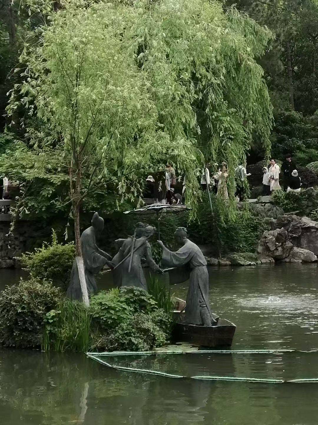 遥看三潭印月,恰似明珠嵌玉,光影动清琚。