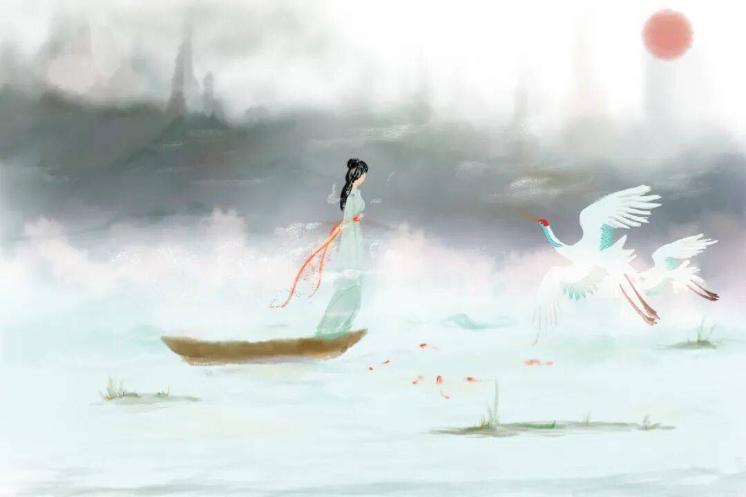 据崔豹《古今注》记载,一天早晨,汉朝乐浪郡朝鲜县津卒霍里子高去撑船摆渡,望见一个披散白发的疯颠人提着葫芦奔走。眼看那人要冲进急流之中了,他的妻子追在后面呼喊着不让他渡河,却已赶不及,疯癫人终究被河水淹死了。