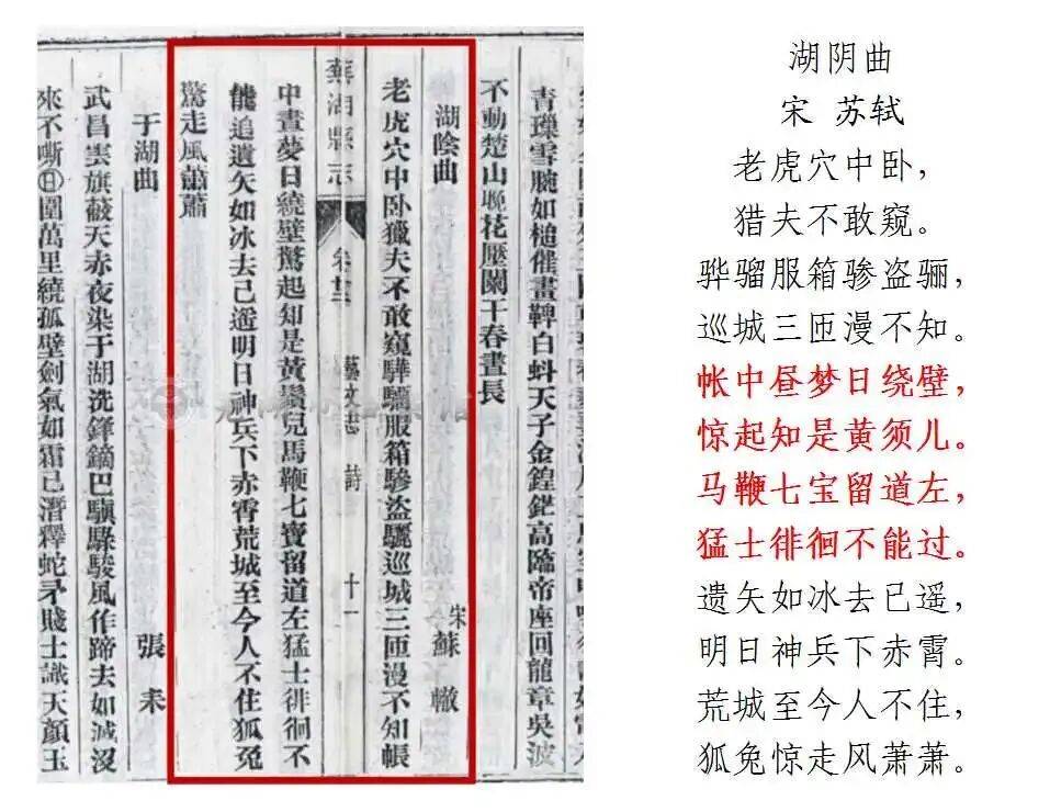 嘉庆版《芜湖县志》对苏辙所作《湖阴曲》的记载