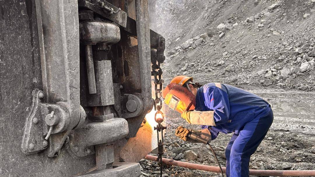 她日常需要焊水箱、换拉门绳、修铲斗、焊断裂的大梁。有时候蜷缩在狭窄的铲斗内腔,也曾攀上十几米高的检修架。仰焊、俯焊、跪焊,每个姿势要维持很久。活儿不多的时候,中午12点从采石场下撤回厂房,午餐、休息。忙起来要在采石场吃午饭——“有时候一阵风吹来,沙子就吹进盒饭里。”下午继续上采石场维修采矿机,或是在厂房焊铁板,5点打卡下班。这样的工作节奏,循环往复了28年。