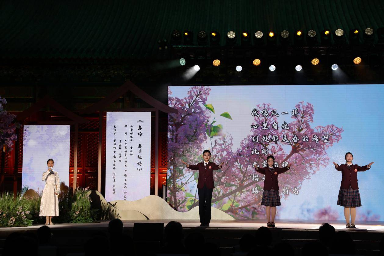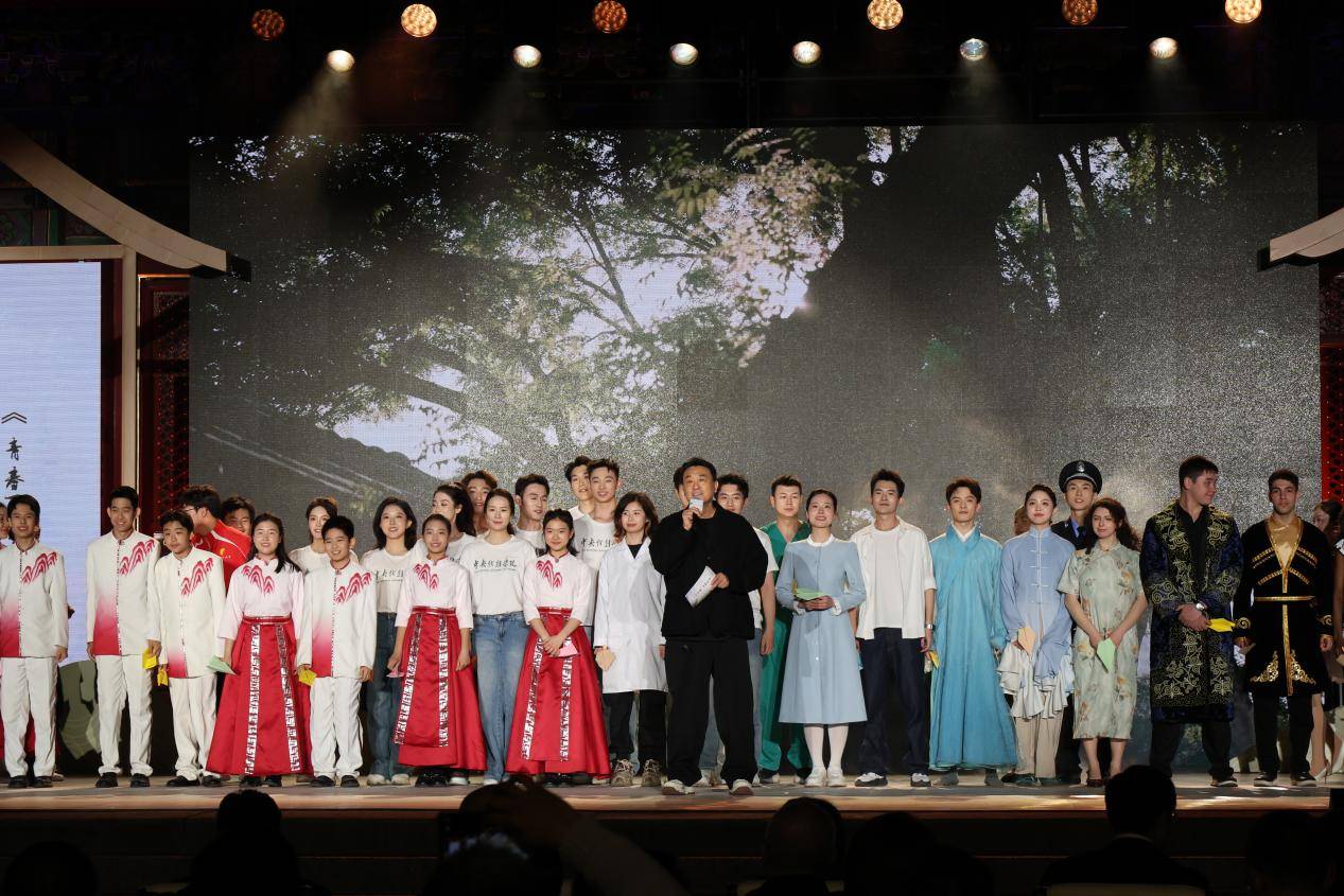 当晚,知名演员何冰以一曲《青春万岁》压轴登场,“所有的日子,所有的日子都来吧,让我编织你们,用青春的金线,和幸福的璎珞,编织你们”,深情的朗诵引发全场大合唱,将现场气氛推向高潮。全场演员共同登台,齐声呐喊“青春万岁”,青春的赤诚与诗意的热忱在报国寺上空回荡。