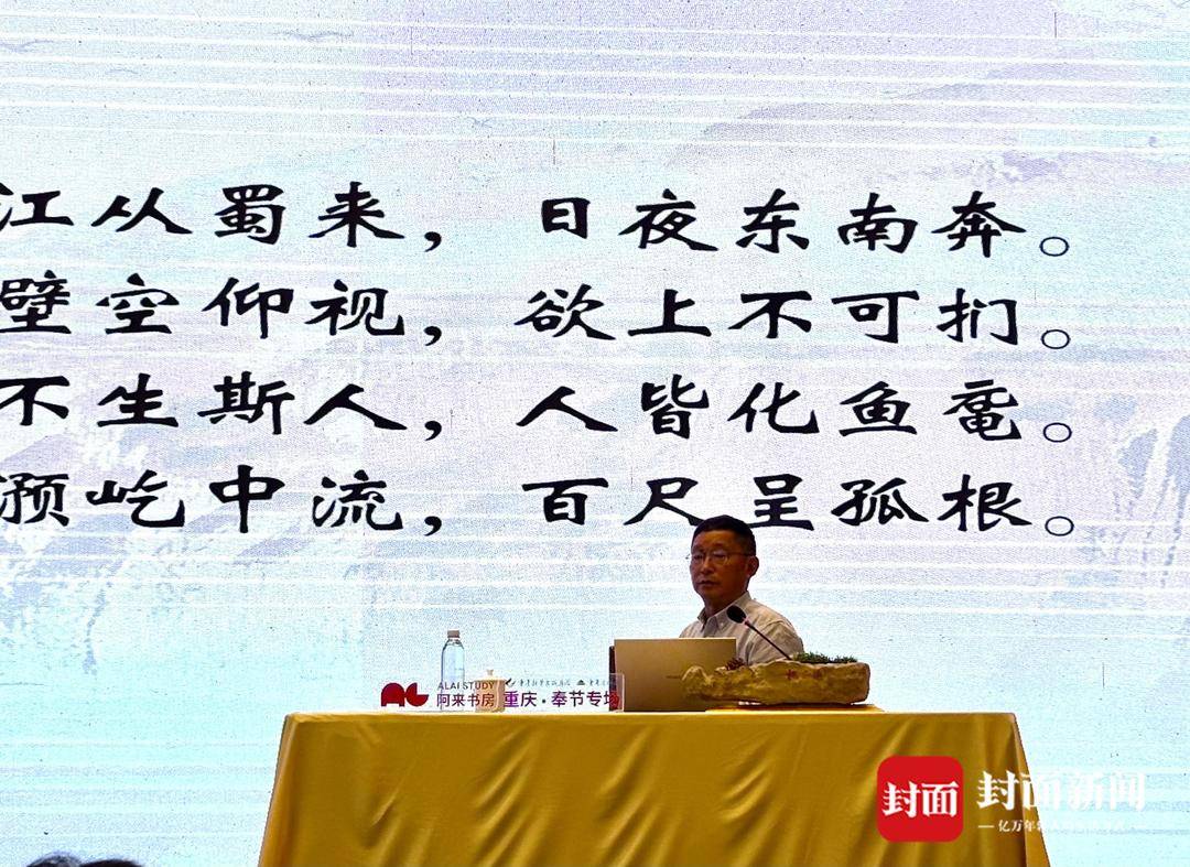 走你走过的路,看你看过的风景。4月11日下午,由川观新闻、封面新闻、上行文化主办的阿来“唐宋诗中的巴蜀与成都”系列讲座之“陆游蜀中诗讲”,在重庆奉节迎来了第二十讲。本场讲座中,阿来以“零落歌诗遍两川”为主题,细读陆游缅怀杜甫的诗篇,并以杜诗为参照,辨析唐宋诗的异同,品味唐宋风韵。讲座中,阿来旁征博引,深入探讨了诗歌与大地、山川的关系,以及唐宋诗词的异同。