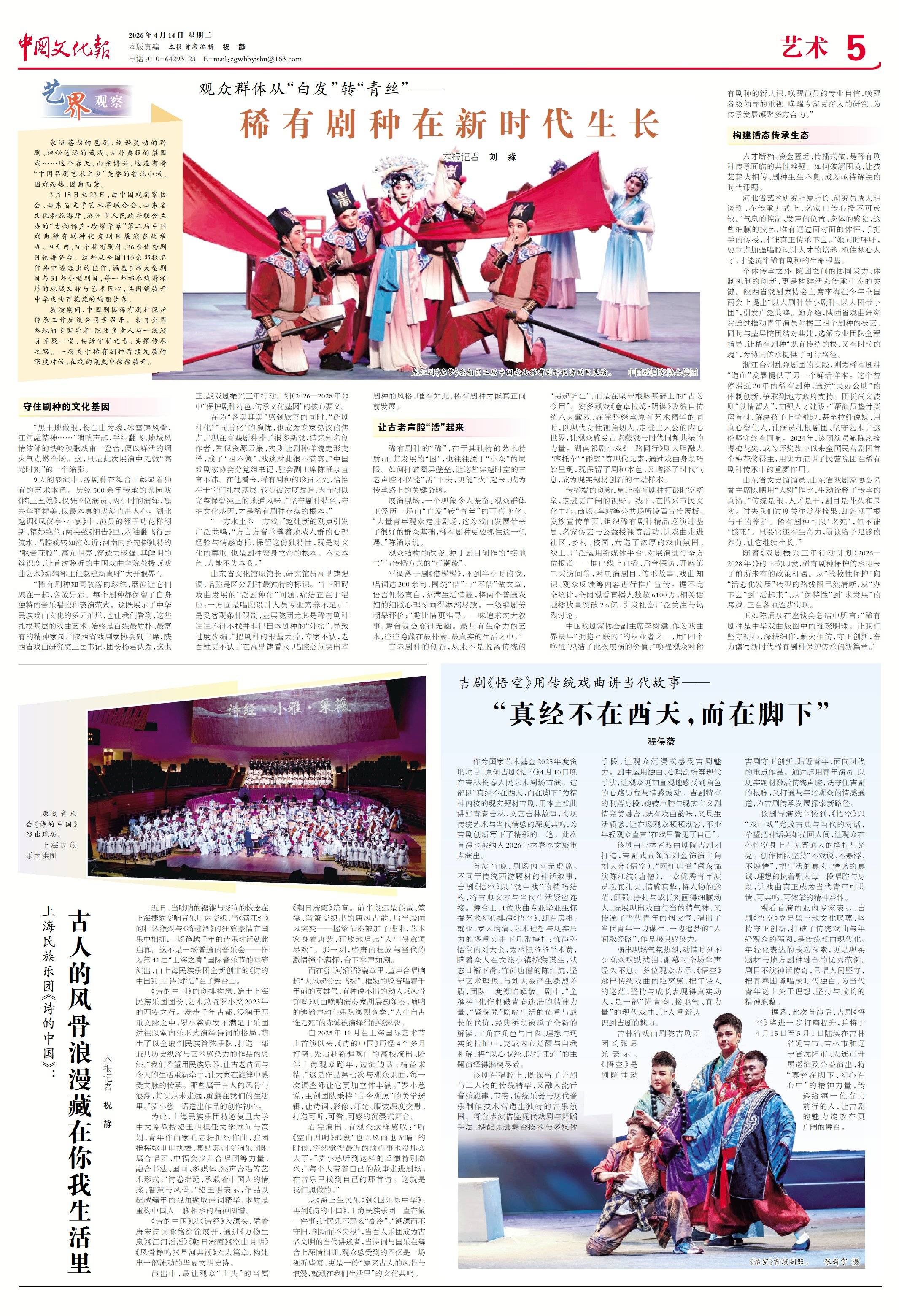 自2025年11月在上海国际艺术节上首演以来,《诗的中国》历经4个多月打磨,先后赴新疆喀什的高校演出、陪伴上海观众跨年,边演边改、精益求精。“这是作品第七次与观众见面,每一次调整都让它更加立体丰满。”罗小慈说,主创团队秉持“古今观照”的美学逻辑,让诗词、影像、灯光、服装深度交融,打造可听、可看、可感的沉浸式舞台。