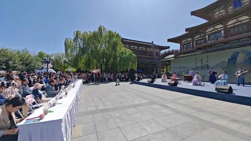 文艺活动结束后,嘉宾与市民一同参观书法展、游览青龙寺遗址,在古建春色中观诗、赏书、游园、悟史,全方位感受乐游原历史底蕴与唐诗文化魅力。