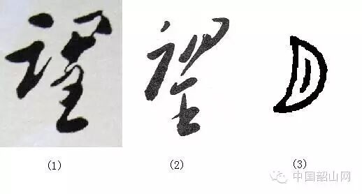一、文字的初始形成,一是用象形的画图符号表达思想;二是把不便用具体形象表达的,采取以意象符号来替代。汉字中有相当一部分来自于象形,经过多年的发展变化,形成楷书稳定的笔画结构。末尾写亚子先生教正的范本中,望字“亡”部的点是侧笔起势,这种点永字八法中称为“侧”,点内有衄和挫的用笔,孙过庭《书谱》中说:“一点之内,殊衄挫于毫芒。”点下的横画是尖笔入纸行笔到右顿笔回锋,锋回到接近中间再写竖提,与“讠”旁写法有区别。 右边月的写法,是从郑文公下碑中望字右部月字的结字变化而来,把第一笔斜撇变为平撇,(个人认为是从右边起笔,不是横画写法。)把郑文公碑中带有弯度的第二笔撇画,变为两笔,第二笔用魏碑笔法写为三角形点,是为了与左边的点相呼应,这是主席用笔的巧妙之处。通过牵丝可看出,月部的最后一笔是竖笔(如图1)。这种写法增加了厚重感,形成了刚劲肃穆的意象。
