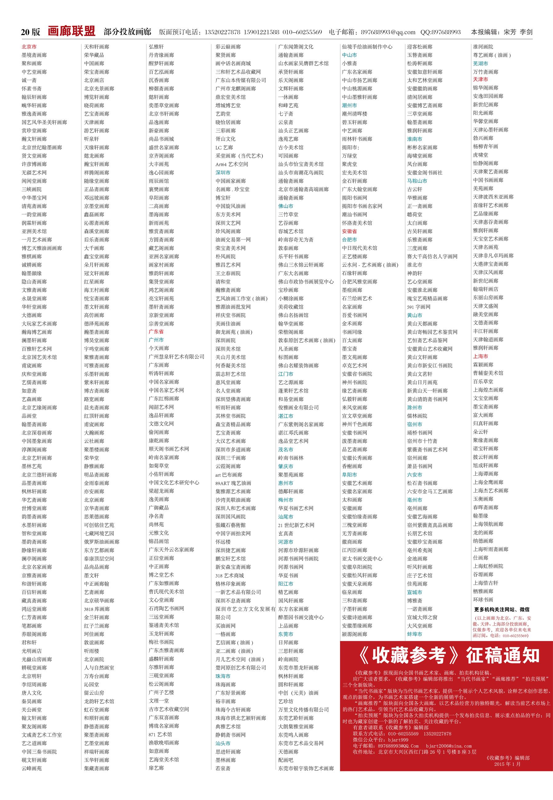 20版:画廊联盟 /《收藏参考》征稿通知