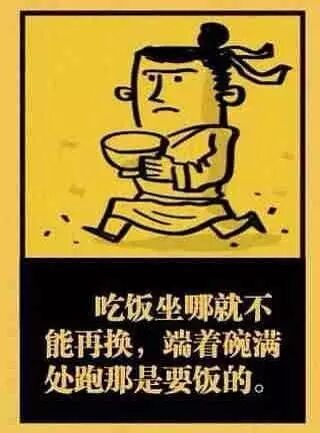 18. 吃菜不许满盘子乱挑,只能夹眼前的;