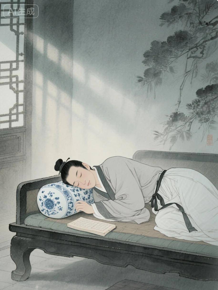 有一天,他遇见一个道士,把心中的苦闷一股脑倒了出来。道士就给了他一个青瓷枕头,告诉他:“你枕着我的这个枕头睡一觉吧,我能实现你的愿望。”