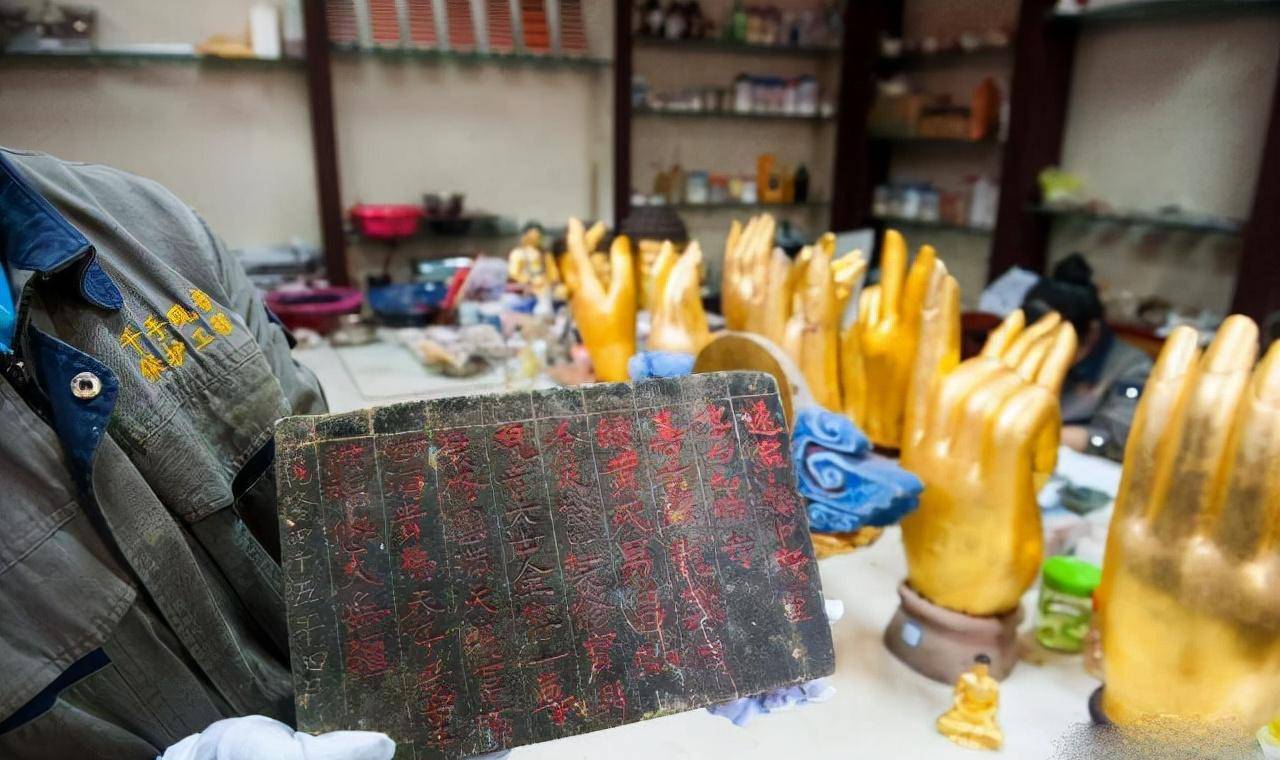 2011年4月,修复工作正式开始。就在工程进行的过程中,一名工人在作业时无意触动了观音像腹部的一块石砖,随即发出一声轻响,一个隐藏的暗格就这样显现出来。大家小心翼翼地打开了这个暗格,发现其中竟藏有一些珍贵的文物。最令人兴奋的是,其中还有一块石砖,这块石砖上刻有94个字,讲述的是乾隆年间修复佛像的经过。