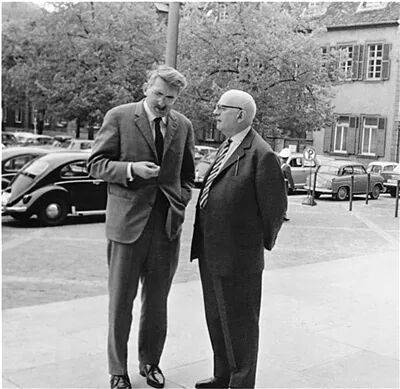 阿多诺和哈贝马斯在1964年4月召开的海德堡社会学家大会上。