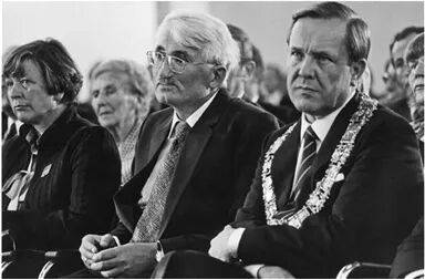 1980年,哈贝马斯(中)在法兰克福颁阿多诺奖。