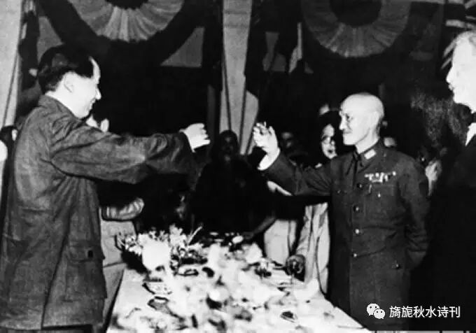 1945年重庆谈判期间,毛泽东与蒋介石相互敬酒