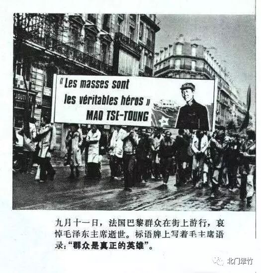 当然,这种谎言已经遭到人们从多个历史角度进行的有力批驳。而在下近期则从网上看到了1976年毛主席逝世时《人民日报》关于国内外悼念情况的新闻,看到当时整个世界对毛主席的悼念已远远不是我辈所能想象到的。其中,仅仅向北京人民大会堂的毛主席灵柩敬献花圈的国家便多达60个左右,其中大多还是来自各国的元首、政府和左翼政党组织。这其中不仅包括兄弟党和第三世界国家,而且几乎所有资本主义大国的领导人都向这位帝国主义、殖民主义的东方克星献上了自己的敬畏之意。虽然这些人大多与毛主席彼此持不同政见,但他们都知道:一个将东亚病夫重塑为东方巨龙的伟人,无疑是对人类做出巨大贡献的巨匠,他的传奇理应被这个世界世代传颂和敬仰.