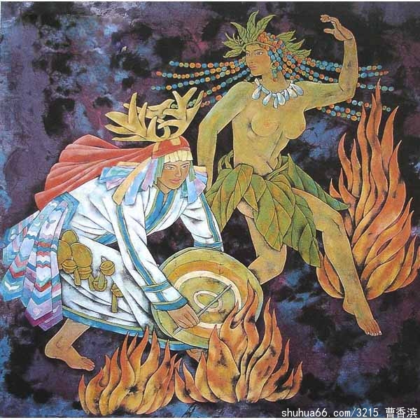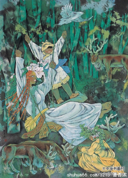 作为北部边陲的美术工作者,曹香滨将民族情怀融入艺术,用画笔记录我国北方的渔猎文化,多次去大小兴安岭体验生活。她创作的《鄂伦春人的故事》、《鄂伦春人从大山林走来》、《摇荡夏天》、《北方家园》、《鄂伦春之梦》等作品,用梦幻般的色彩和笔墨描绘了时代进步给鄂伦春人和原始村落带来的新变化。她从鄂伦春人的生活瞬间捕捉幸福的符号,又把这份幸福留在民族历史的记忆中。一系列少数民族风情作品凝聚着画家对历史、现状和未来的关注,承载着画家对地域性、民族性、全球性的思考。在表现北方少数民族风情和民族历史的精神上,她倾注了大量心力,也收获了丰硕的艺术果实。![]()