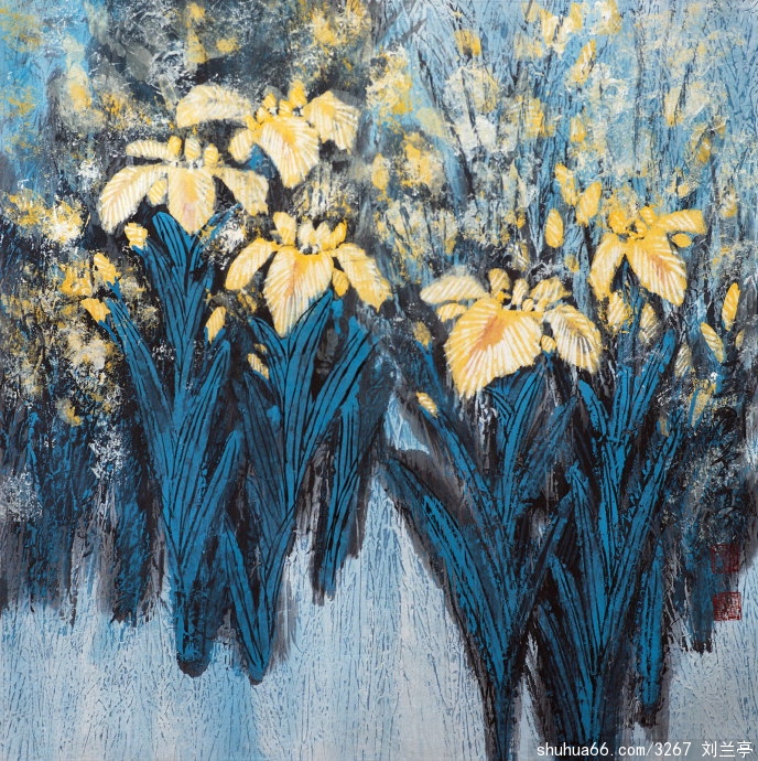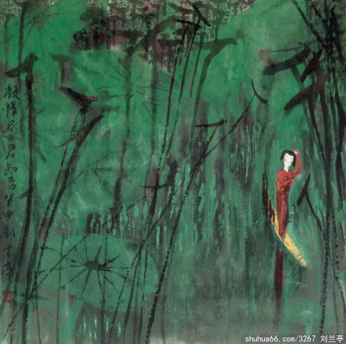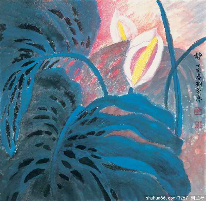 刘兰亭——我认识她多年。她曾先后两次给我作画,一次是笔会上她画竹别人要拿,结果被我抢到手,那天我还争着和她合影。另一次是我强行跟她要画,要得她无可奈何,便给我泼了一幅牡丹。再后来呢?我不见她的人影好长一段时间,只好总看她给我作的画,看得呆呆的、痴痴的。便想这世界上竟真的有神祗呀——来自阿尔卑斯山上的,喜马拉雅山上的神祗呀!刘兰亭,她是美神、爱神和艺术女神的化身,是她们的集合体。我想象着她的身上体现着美神的娇艳,爱神的温柔,艺术女神的智慧。我不敢说她太完美了,可她真的太完美了,太完美了。这是我看她的画而对她的人的感觉,也是我看她的人而对她的画的感觉。如此我才想到刘兰亭这位人物。“巾帼锐进,彩笔新图”,是前辈画家胡潔青为兰亭1993年在中国美术馆举办的个人画展所写的祝贺词。正如前辈所赞“巾帼不让须眉”,兰亭是一位勤奋进取的职业画家。从她的作品中不难看出,她虽为女儿身,但不失丈夫气。国内外的多次个人画展都使人感觉到,她的画作宏博、质朴、沉雄、凝重、刚拔、旷达。她驰骋于雄浑之间淋漓尽致地以独特的艺术语言表达她的思想和情感:一片山、一片水、一树枝、一绿叶都乃师古不泥,异彩可撷。没有非凡的胆魄,出众的才华,恢宏的气度与坚韧不拔的毅力是难以创造出独特的艺术来的,也正如前国家副总理田纪云同志所赞:“外师造化 中得心源”。刘兰亭正是这样一位艺术家。