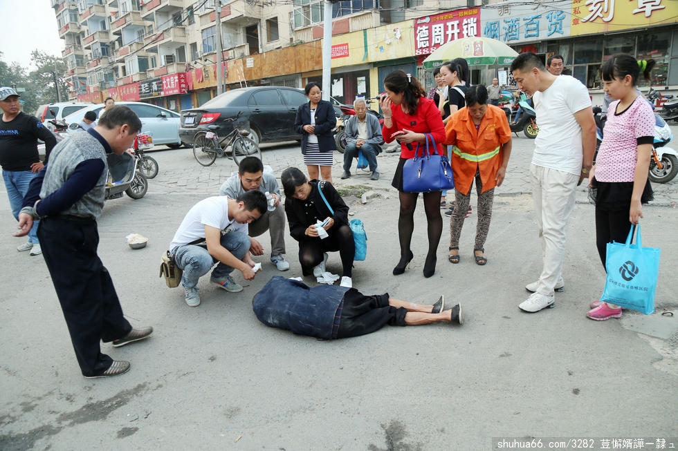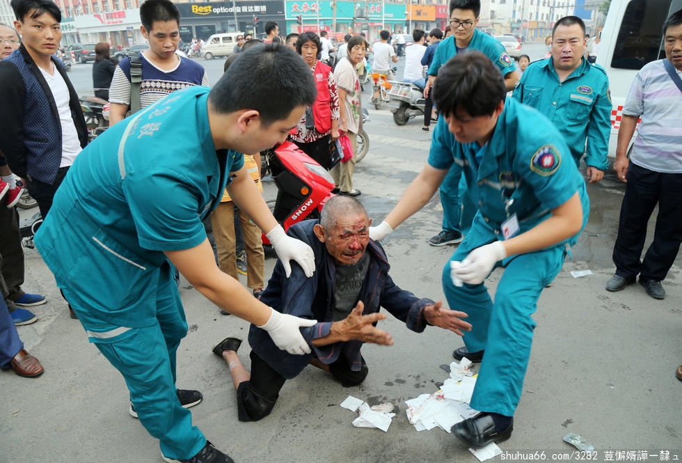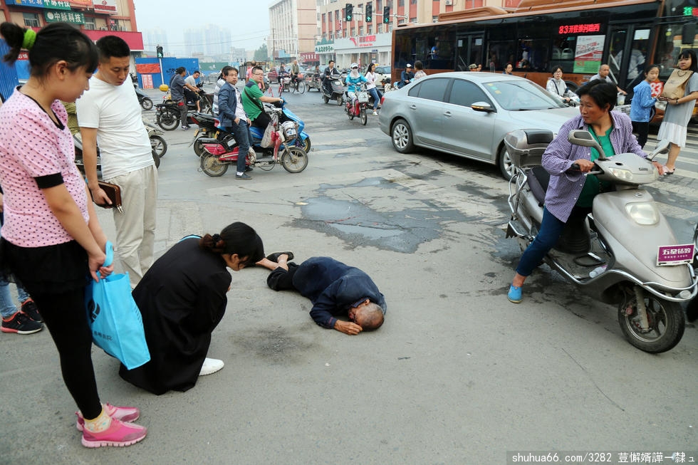 郑州老人倒地流血 市民先拍照作证后搀扶