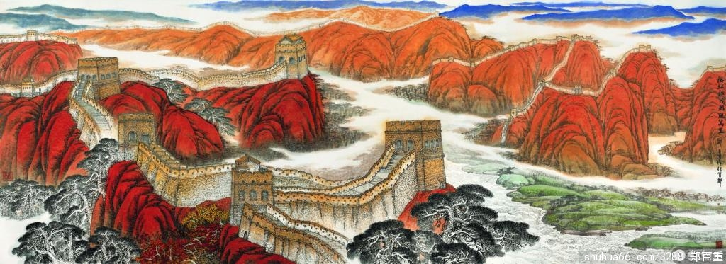 如果说张大千的作品斑斓雄浑,那幺傅抱石的作品应是苍茫辽阔。傅氏以史入画,曾言:[我比较富于史的痴嗜,通史固喜欢读,与我无关的专史也喜欢读,我对于美术史、画史的研究,总不感觉疲,也许是这癖好的作用,因此我画笔之大,往往保存着浓厚史味]。傅抱石抓住了中国历史上文学艺术大转变的两个枢纽时期进行研究,一是东晋六朝,从顾恺之出发,俯瞰六朝;一是明清之际,从石涛出发,上下扩展到明代隆庆、万历和清朝的干隆、嘉庆,使他领悟到中国哲学和美学的真髓,掌握中国美学的特征,对动的理解,反映在他对艺术发展的整体观,和作品造型观的认识表现两个方面,所以作品浑濛今古,苍茫淋漓。傅抱石画用散锋大笔挥洒,用墨多于用色,焦墨浓墨用过以后,还用淡黑,最后才用色,用笔凝重敏捷,时而用吸水宣纸,控制画面墨调,最后用硬锋小笔细心收拾,破笔散锋,聚散分明,出入变化,使画面充满了激情,更有高古衣冠的人物悠游其中,使人感觉到历史的脚步声。