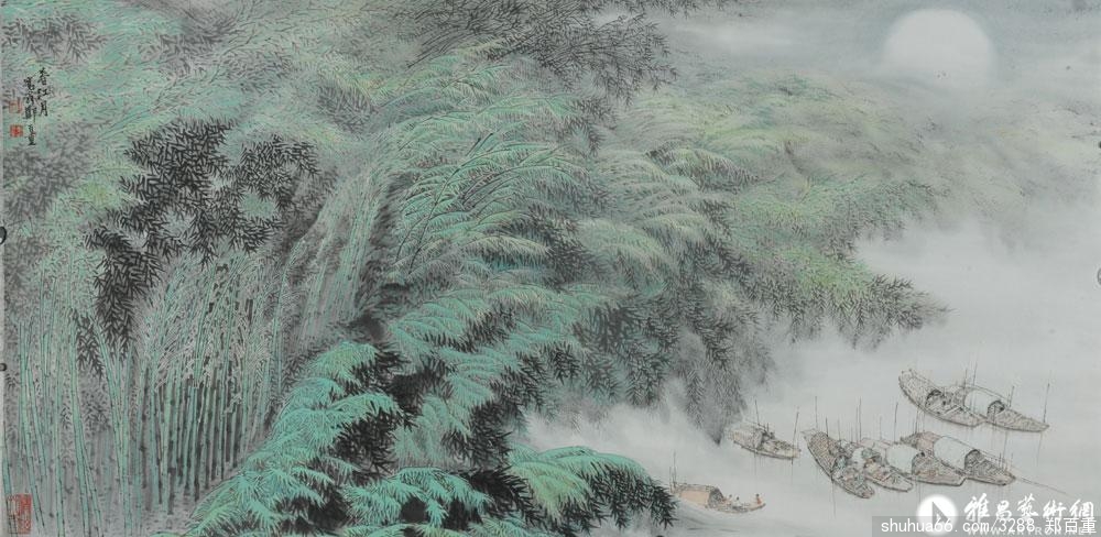 陆俨少坎坷而曲折的一生,和他对文学艺术的献身精神形成了强烈的反差,也造就了他不鸣则已,一鸣惊人的气势磅礴,感动人心的作品问世,给当代山水画坛带来震撼。他的画带着万里长江的清风,穿越峡江险水而来,惊涛拍岸,乱云飞渡,船工们同心协力,号子声响彻清空,人生极积争取,鼓勇向前的精神会一直感动着你。陆俨少有特殊丰富的人生历练,绘画造境,得心应手,往往用一枝不大的毛笔,住手沾来,不断扩展,或点或面或线,随意生发,变化无穷,他自创的勾云法、留白法和山头轮廓光的应用。使他的画扩展了许多内容,尺幅不大已有千里之思。当然还应当看到,他的画带着某种感伤的调子,他的色彩流露着苦涩的味道,风格的强化又使他的作品横图留下了单调的影子,这是历史而无法苛求的。