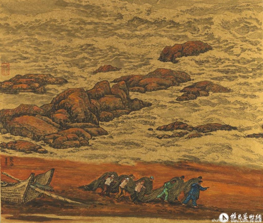 岭南画派的关山月和黎雄才,创作方法和金陵画派相似。画里的每一棵树,每一丛村舍,每一弯流水,都经过精心的选择和修裁,安排在适当的位子上。只是岭南风物带着强烈阳光,更加鲜艳耀眼,因此,比起金陵画家更多接受了西方色彩绘画的影响,画面上铺陈着绮丽的光芒。黄土高坡的交响乐章只写成了一半,待等后人去继续。青山绿水的江南美景,更需要贤者去梳理、集中,把金陵、岭南画家的抒情小诗,炼出精髓,汇合成史诗式的文献。