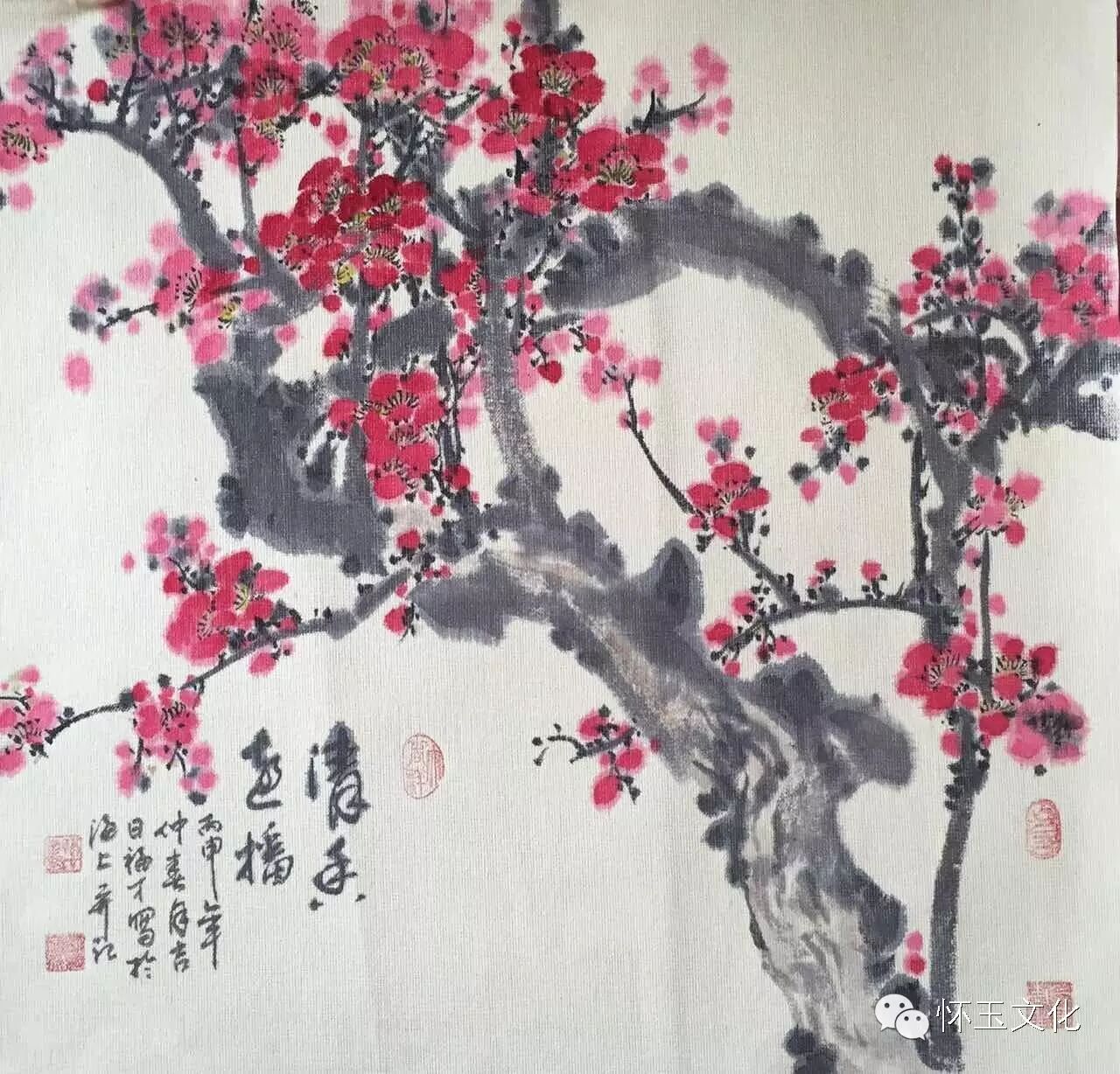 先生的花鸟画从近现代书画名家中汲取养料,设色绚丽、笔墨清劲,如《国色天香》之牡丹、《香满乾坤》之梅花等,皆为海派小写意笔法,兼工代写,工写结合,既重形又重神,神形交融。他画牡丹与梅花,只求娇艳而避妖艳,俏而不俗,艳而不媚,花朵浓艳秀丽,层次分明;花蕊生动逼真,鲜活丰满;枝杆挺拔茁壮、曲直遒劲;花叶浓淡相间,疏密有致;花根苍劲厚实,生机盎然,注重突出“动感”,力求达到 “嗅之以香,触之以动”之美妙艺术境界。