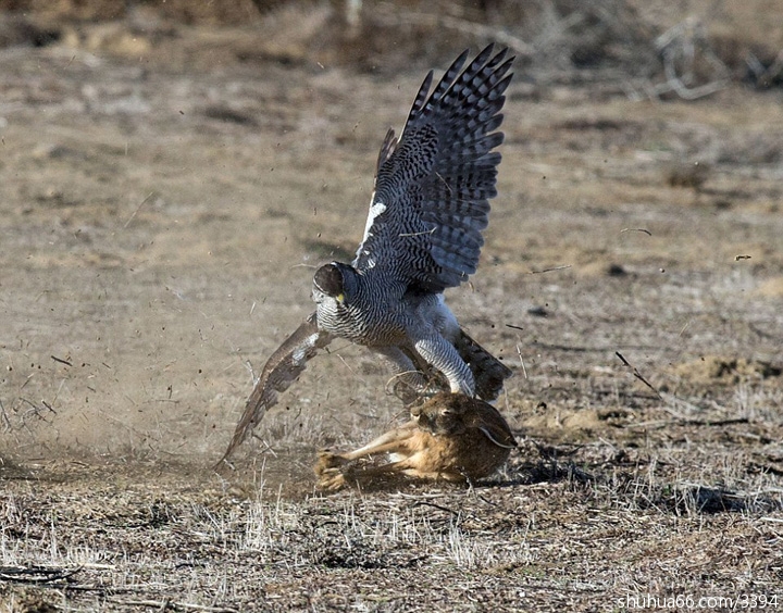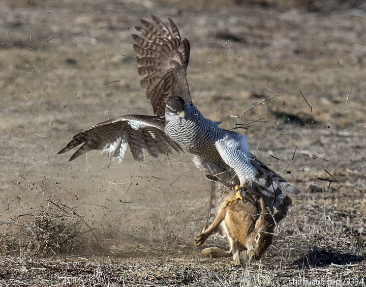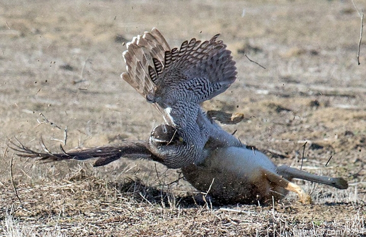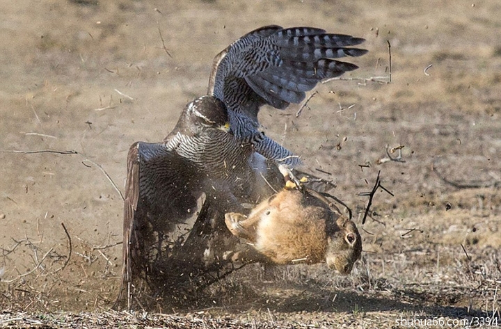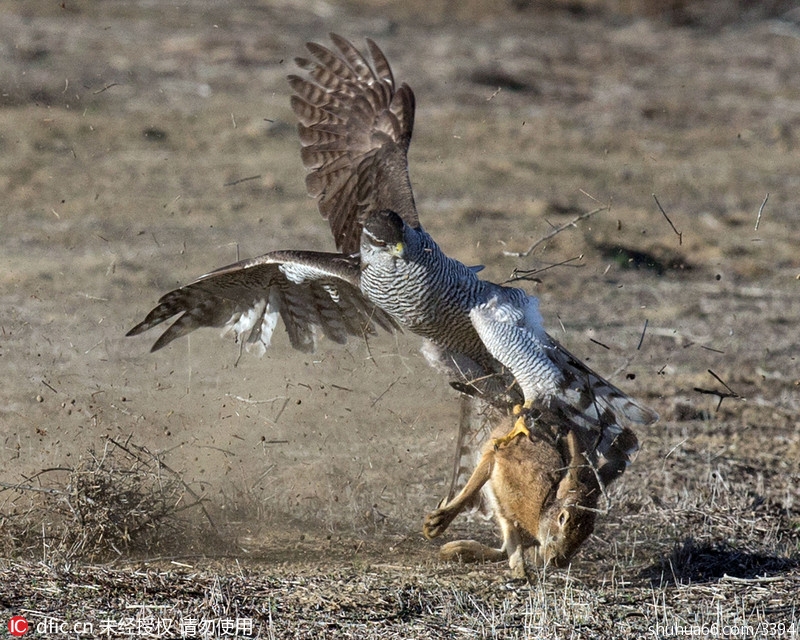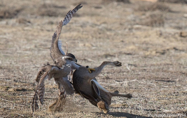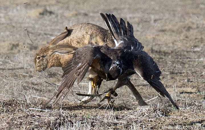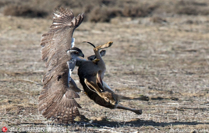 2016年3月9日报道,美国加州中央谷地,一只苍鹰瞄见草原上有一只野兔,于是俯冲而下,像要杀死这只野兔饱餐一顿。不过这兔子身手敏捷,与苍鹰纠缠一会后,成功逃脱。