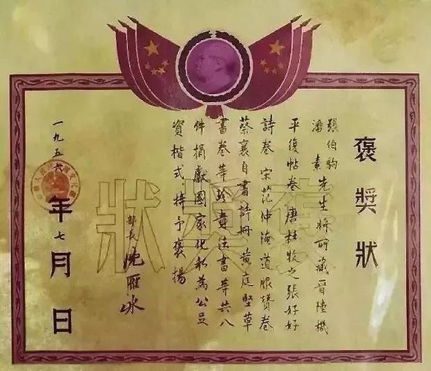 政府欲奖励其20万元,但张伯驹分文不取,最后只收下一张褒奖令。