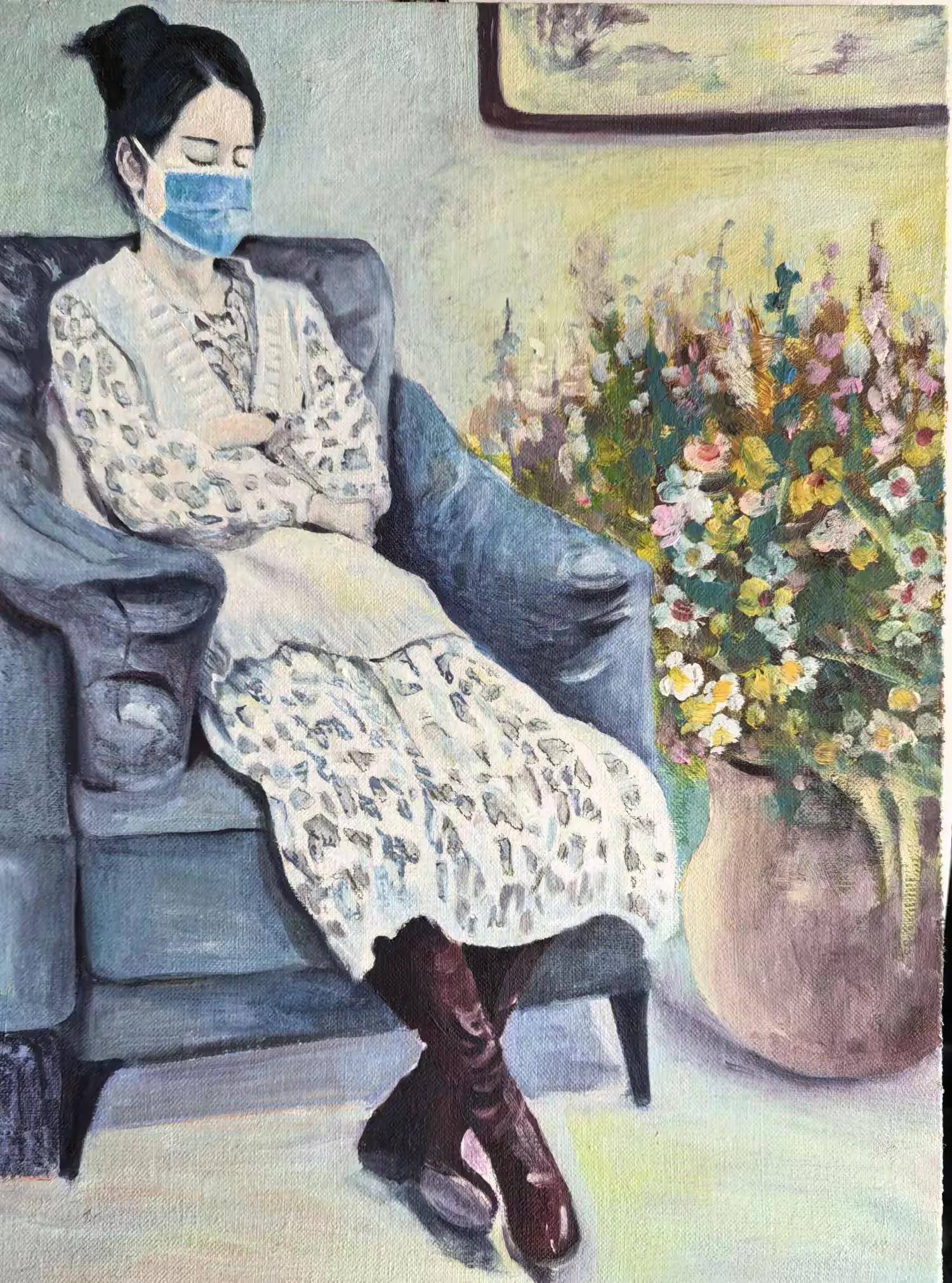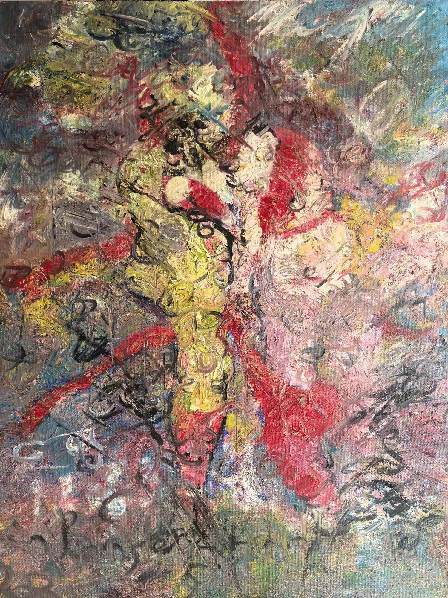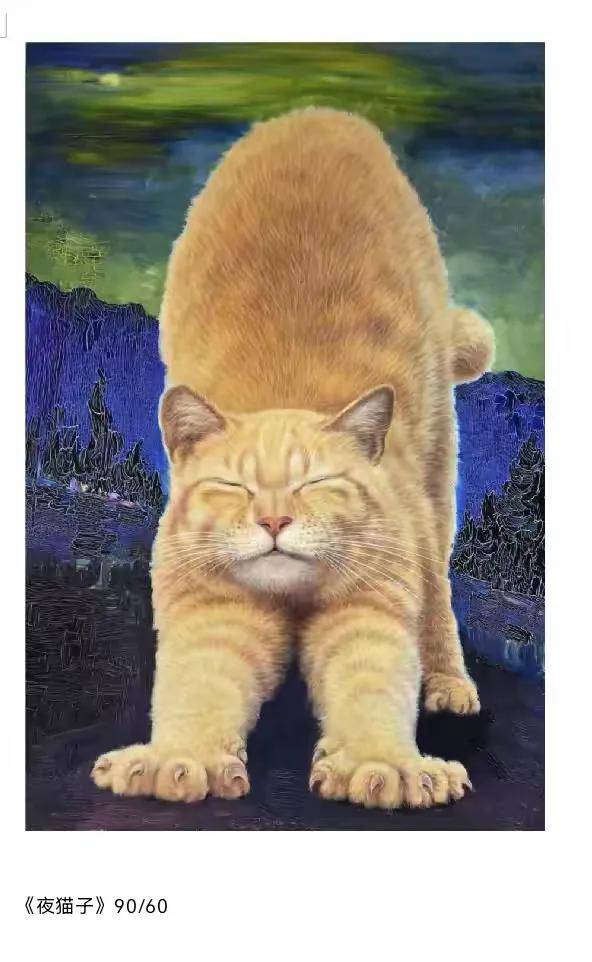 在油画的创作实践中,陈利军以解构主义视角突破了传统写实主义的边界。我们可以以《猫》为例来说明这个问题,他通过对猫科动物生理形态的夸张变形,将生物性特征升华为精神符号。画面中慵懒的伸腰动作被夸张处理,纵向跨幅的笔触肌理形成天地轴线,这种解构性重组使作品超越了物象表征,构建出由个体生命体验向宇宙意识跃迁的视觉叙事。陈利军通过写实到写意的戏剧性转折,实现了从具象再现到思想表现的范式转换,这种创作手法既延续了画以载道的价值主题,又融入了表现主义的现代性特征,为油画“意境化”进行了成功示范。