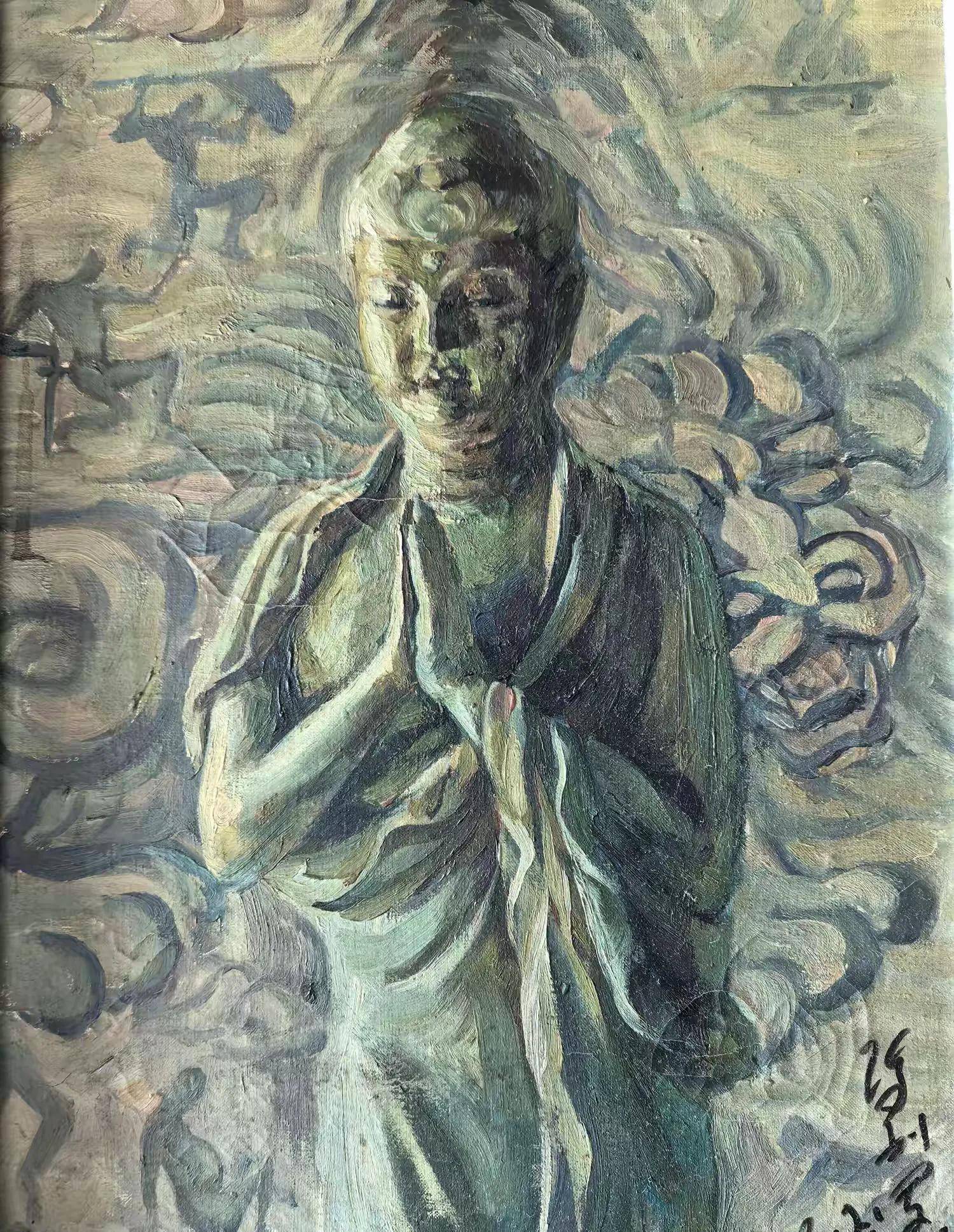 超越形骸,走向心象之境。以佛教题材作品为例,陈利军的油画创作不断沟通东西方美学的深层对话,把佛像的庄严法相被解构为色彩的新鲜矩阵,通过非写实的笔触重组,使宗教意象转化为普世的精神脉络。这种创作实践既延续了敦煌壁画的象征性传统,又吸收了西方油画的几何抽象理念,清晰地展现着当代油画的转型路径,既保持着对写实传统的尊重,又不断突破媒介边界,在形态解构与精神重构之间找到了平衡点,个性化地定义了绘画的本质价值,为当代油画的发展创新提供出一片相当深刻的启示空间!