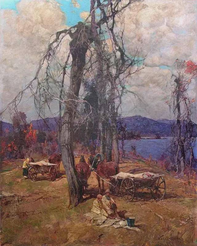 1920年后,科列斯尼科夫定居在塞尔维亚的贝尔格莱德。这座充满历史韵味和文化气息的城市,成为了他艺术创作的新舞台。他在这里继续挥洒着画笔,创作出了许多优秀的作品。他的画作风格独特,既有对现实生活的细腻描绘,又有对理想世界的浪漫想象。他善于捕捉生活中的美好瞬间,将人物的情感、自然的景色都生动地呈现在画布上,让观者仿佛身临其境,感受到那份真挚与温暖。