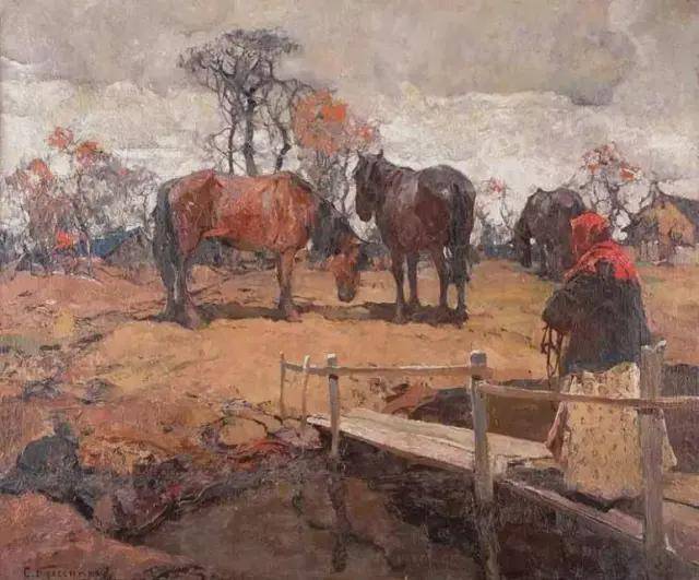 然而,命运似乎总是喜欢捉弄人。1932年,这位才华横溢的艺术家患上了帕金森氏病。这是一种残酷的疾病,它逐渐侵蚀着科列斯尼科夫的身体,让他的双手不再像从前那样灵活,绘画也变得愈发困难。但他并没有放弃,依然凭借着顽强的意志和对艺术的执着,坚持创作。尽管身体状况每况愈下,但他的作品依然充满了生命力,仿佛在向世人诉说着他对艺术的无限热爱和不舍。