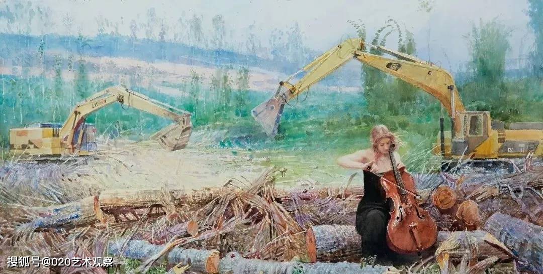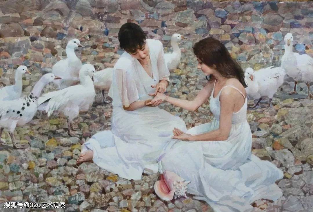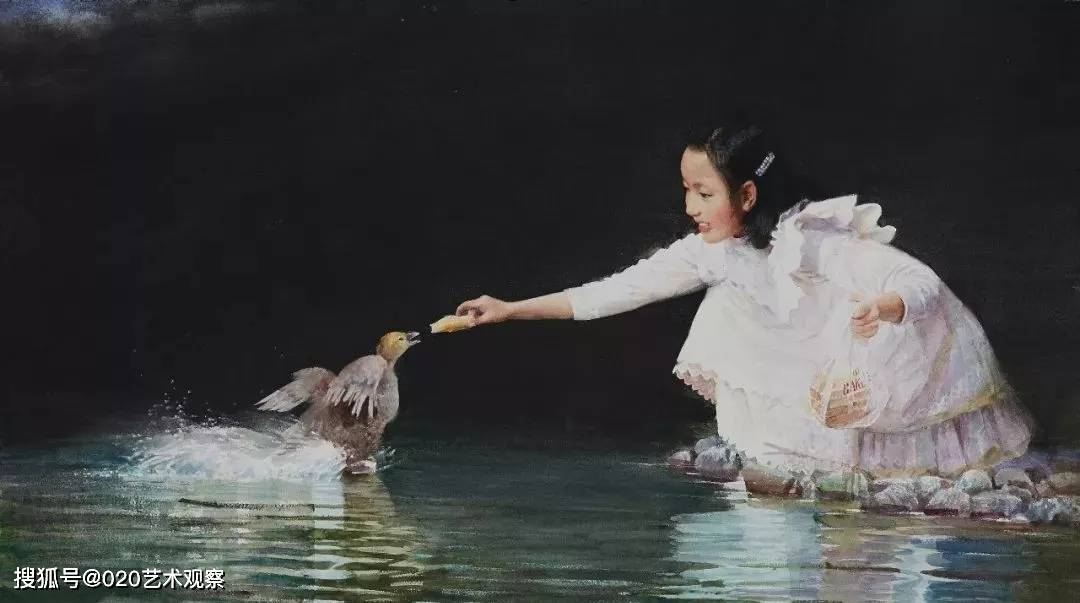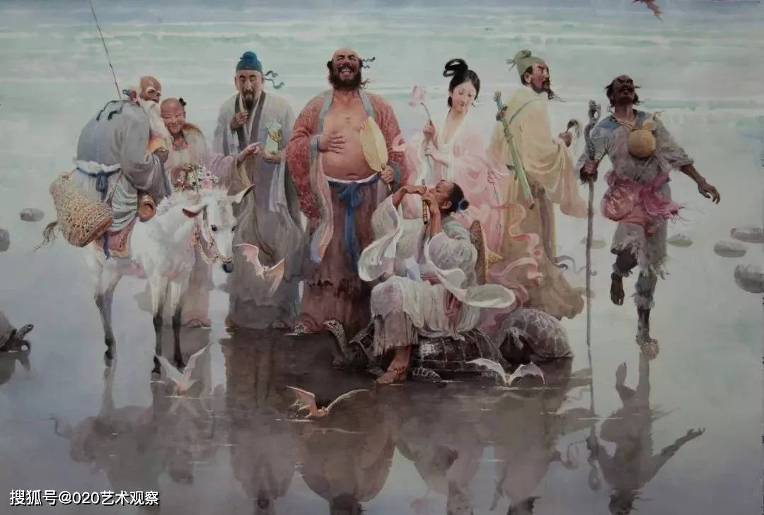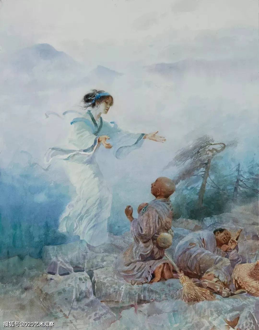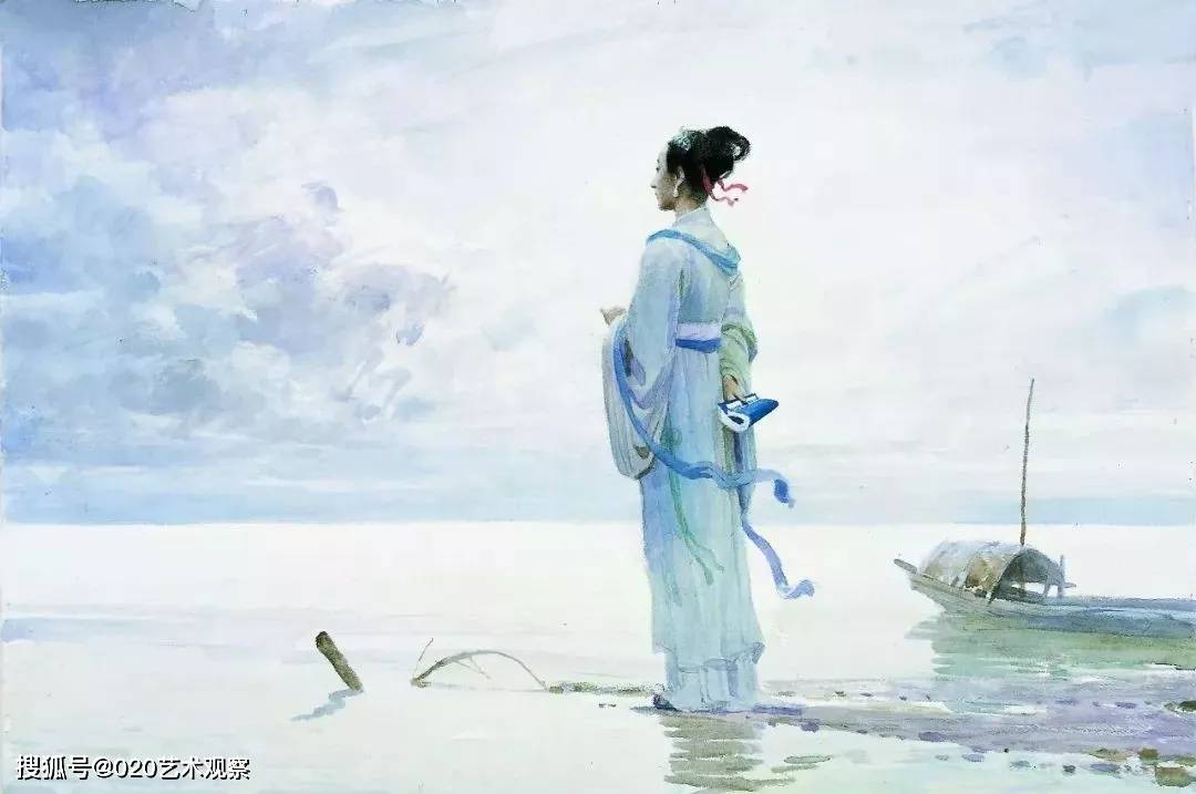 明媚朦胧的月色下,爱神与战神肢体纠缠,力与美在水彩凝固的画面中律动着;古雅、深邃的笔触,中国古代战士与西方神女在光影中徘徊,重现的是杜甫诗中“牵衣顿足拦道哭,哭声直上干云霄”的诗意……