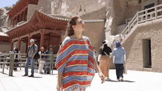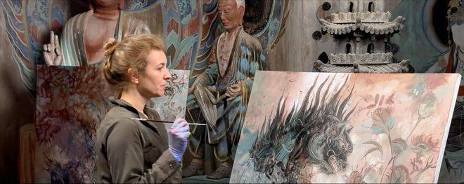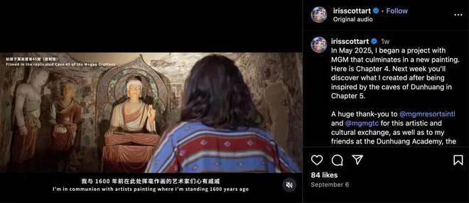 这场东西方艺术文化的奇妙碰撞,也让她产生了把这份创作成果带回美国的冲动,透过她数十万粉丝自媒体INS账号,她发布了自己的敦煌创作之旅的系列纪录视频,让敦煌文化艺术也以新的形式走进美国,让更多人也能透过颜料的温度感受来自东方的敦煌艺术。