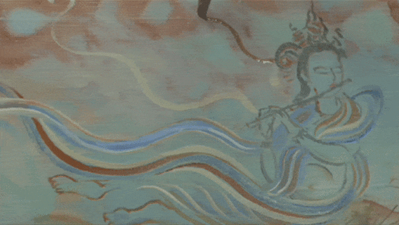 第二幅则以传统和现代“融合”为主题,熠熠生辉的九色鹿,与飞天飘逸而来,跟着它们穿越敦煌山脉,传统与当代的文化、风格在画面中梦幻般交相融合,让古老元素有了当代艺术的鲜活气息。
