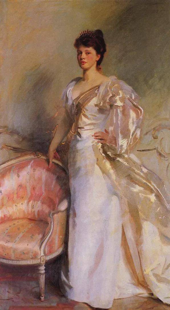 在萨金特的肖像画中,颜色和光线的处理非常微妙。他能够精准地把握不同光线下的色彩变化,通过细腻的色彩过渡和光影对比,营造出逼真而富有层次感的画面效果。他的画像仿佛具有生命力,人物的神态、表情和气质都被刻画得淋漓尽致,让观者仿佛能够与画中人物进行心灵的对话。