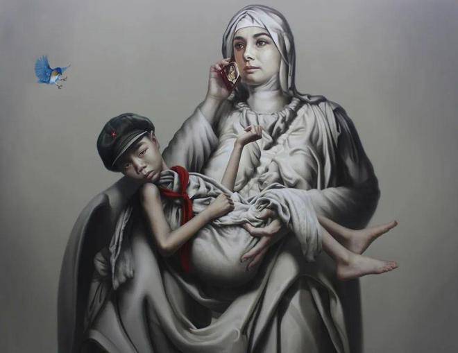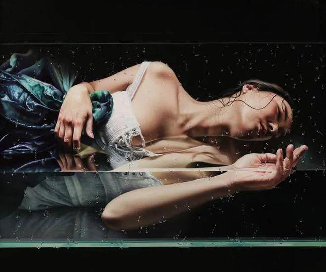 海光镇的艺术深受照相写实主义(或称超级写实主义)的影响,这一流派强调以相机般精准的方式捕捉并再现现实世界的每一个细微之处,从而挑战观者对“真实”与“虚构”界限的认知。然而,在海光镇的作品中,这种对现实的极端复制并非简单的技术展示,而是蕴含了他对现代哲学中“距离论”的深刻思考。