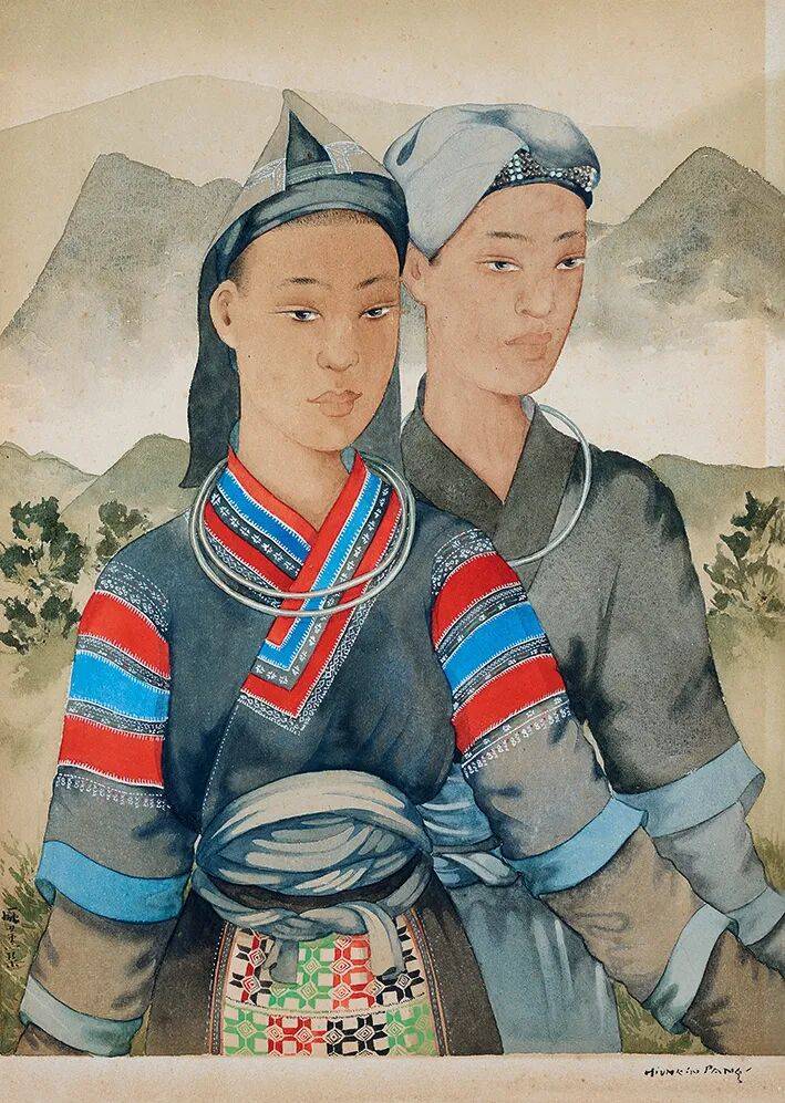 1939年,庞薰琹被任命为中央博物院筹备处研究员,与民族学家芮逸夫一道深入贵州、云南等地苗区进行民间艺术调查。他的足迹遍及八十多个村寨,不仅系统搜集整理了大量苗族服饰、织锦与银饰纹样资料,更以极大的文化尊重与情感投入,亲身参与当地人的日常生活与仪式活动。