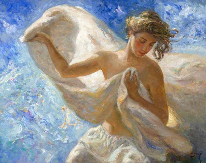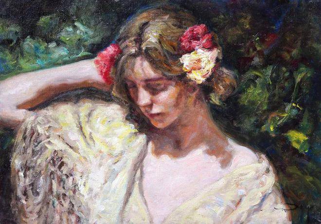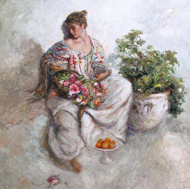 然而,真正让戎约艺术生涯发生转折的,是他25岁时对故土瓦伦西亚和地中海的深深眷恋。他开始越来越渴望用画笔来描绘这片养育他的土地,以及那独特的地中海色彩。这种强烈的情感驱使他不断探索新的绘画方法,以捕捉那完美的光线和阴影,从而组成自己独特的古典风格。
