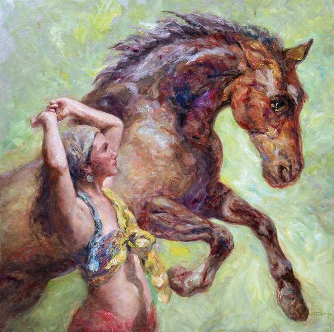 戎约的艺术成就不仅体现在他的技艺上,更在于他对艺术的深刻理解和独特表达。他用自己的画笔描绘出了一个充满情感与生命力的世界,让观者在欣赏作品的同时,也能感受到那份来自艺术家内心的真挚与热情。他的作品不仅是对美的追求,更是对生命、对故土、对艺术的深深致敬。
