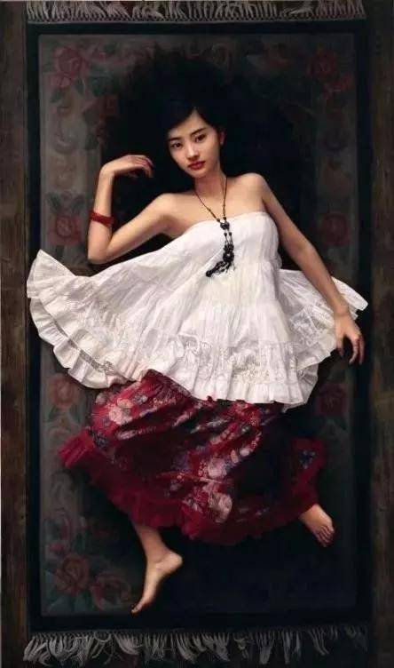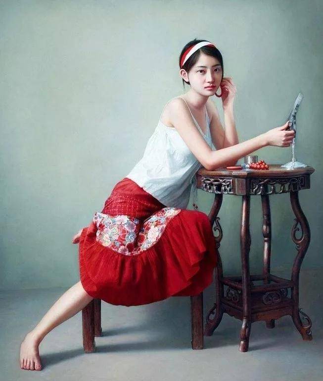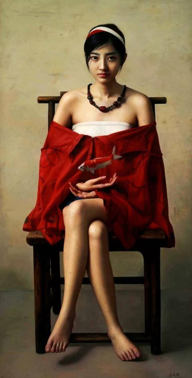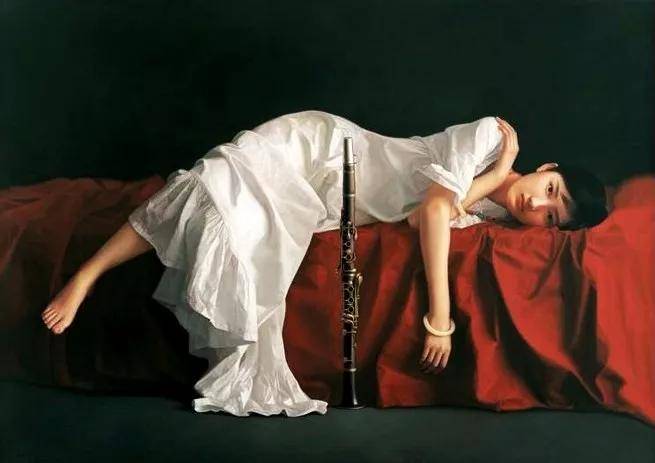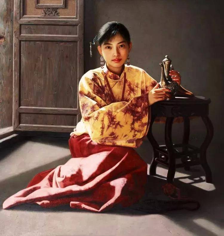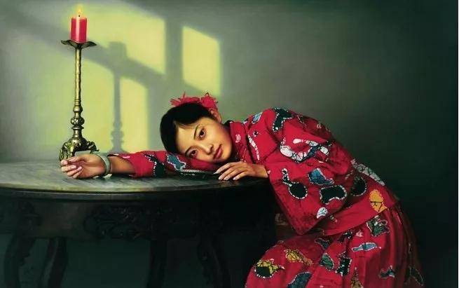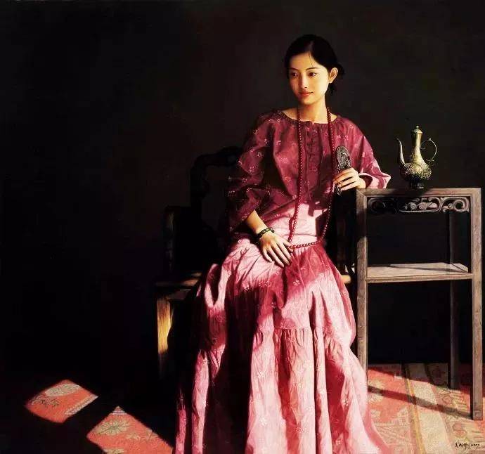 吴成伟的画作中,精致细微的笔触与色彩的运用相得益彰。他通过对光影的巧妙处理,将纯净的美诗意地升华到了一个崇高的境界。他笔下的女性眼神沉静、淡然,无形中透露出一种迷人的气质,让人一看便心生欢喜。