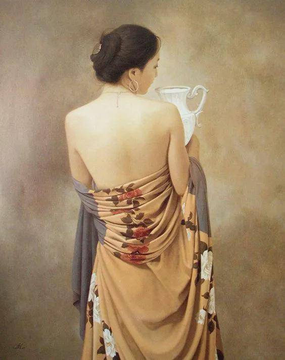 森本草介的画作中,棕茶色调是他作品的标志性特征。他将这种色彩作为画面的基调,无论是人物、风景还是静物,都以棕茶色来协调和中和,创造出一种温和、亲切、充满人情味的视觉效果。他笔下的女性形象,以其冷艳、忧郁、典雅的气质,展现出东方女性特有的神韵和美感。