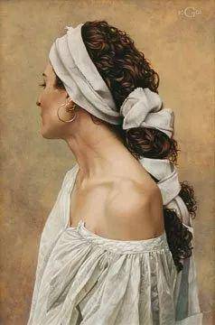 然而,格雷并不满足于仅仅以家人为模特。他不断地探索新的艺术元素和技巧,试图通过他的画作传达出更深的内涵。在《BLUE TURBAN》这幅画作中,格雷对头饰的细致描绘,以及对色彩的精妙运用,都体现了他对艺术的独特理解和热爱。