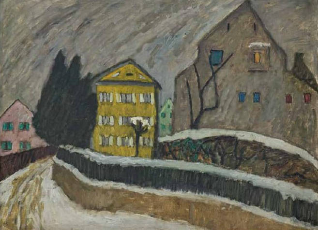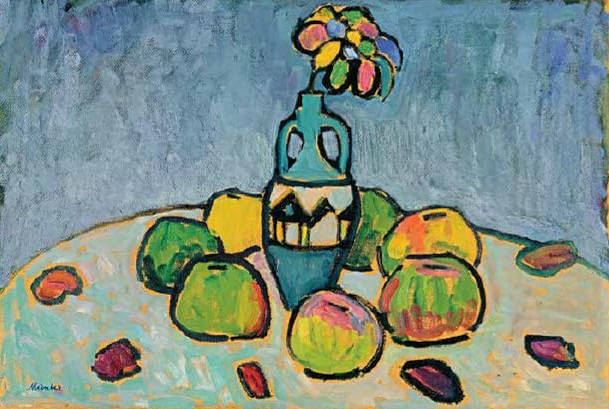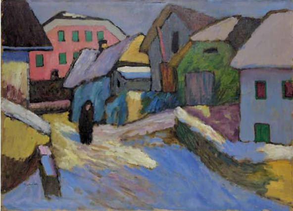 但穆特一直想要摆脱康定斯基的影子,并寻找个人绘画语言,她拒绝模仿现实,而是追求“传达本质”,以色彩与形状表达情感与精神理念。她的作品从印象主义的自然再现,转向对自然的感受与抽象提取,强调瞬间的视觉体验。1908年,在欧洲和突尼斯的成长之旅后,穆特回到德国,开始发展出她标志性的鲜艳色彩,体现出对色彩与形式的激进探索。