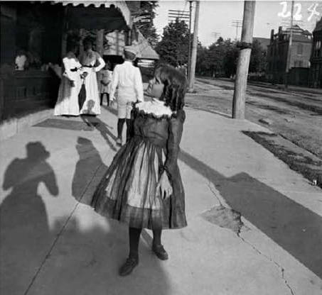 《街边站立的年轻女孩》(Young girl standing on the side of the street),1900年摄于美国密苏里州圣路易斯