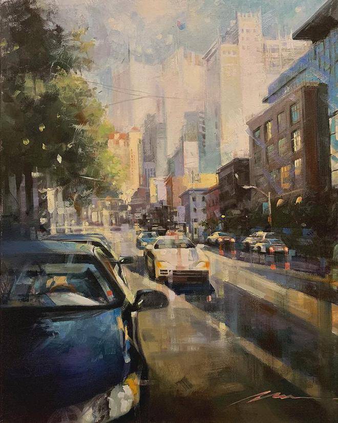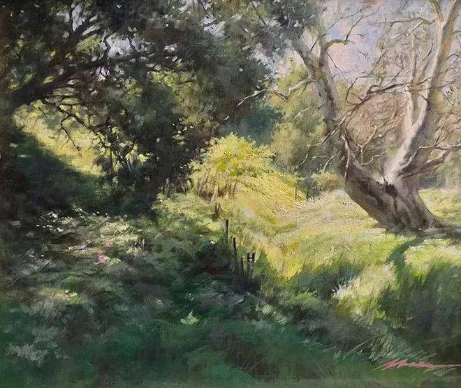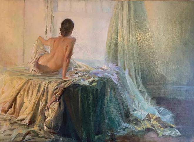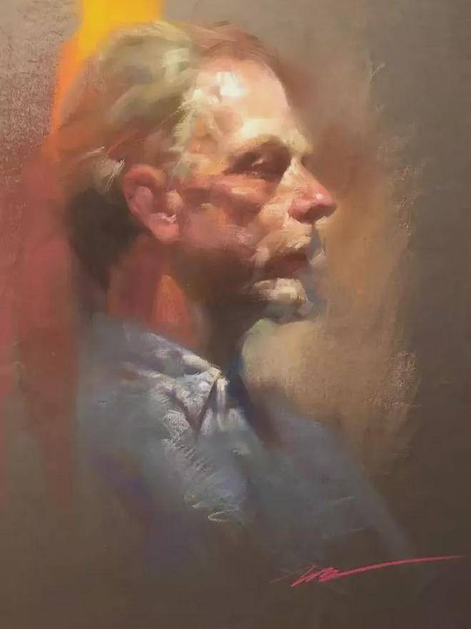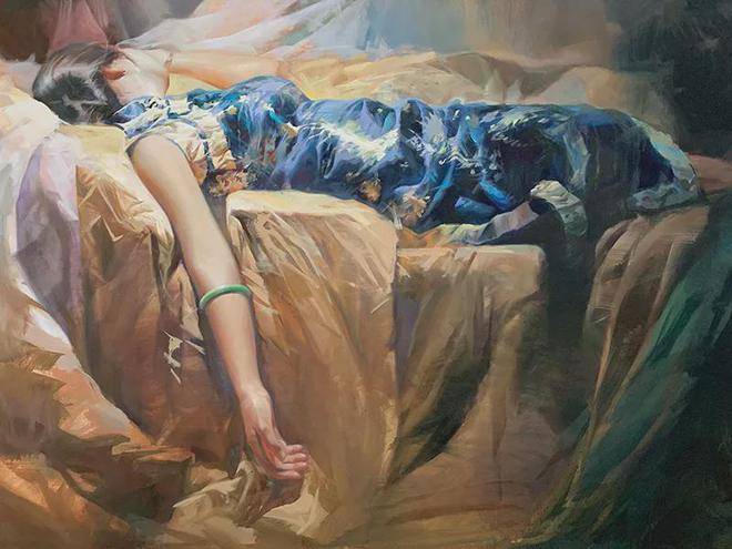 在油画领域,吴健先生的作品时而浓墨重彩,时而轻描淡写,展现出强烈的视觉冲击力与宁静致远的氛围。他的丙烯画作品则利用材质的特性,为画面注入现代感与实验性,而色粉画则以其柔和的质感,展现温婉之美。吴健先生的作品中,色彩与构图是最引人注目的元素,他大胆尝试鲜艳夺目的色彩组合,同时巧妙运用冷暖色调的微妙变化,营造出静谧深邃的空间感。在构图上,他打破传统束缚,通过不规则线条和切割式布局,引导观者进入充满想象与叙事的空间。