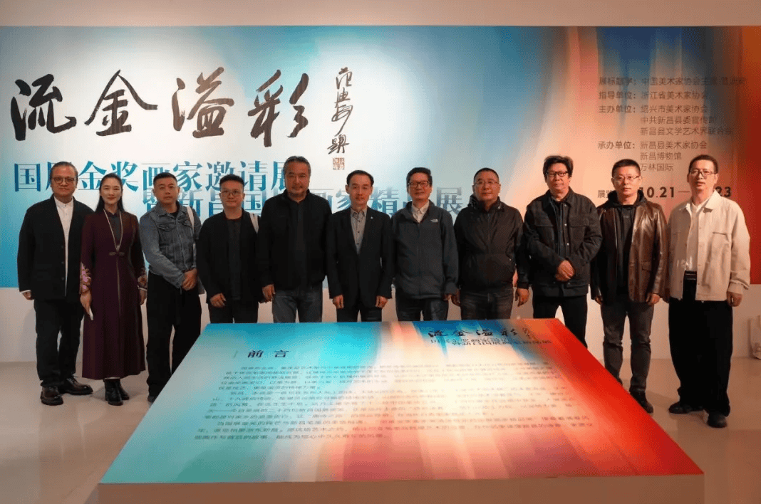 11月4日上午,由中国美术家协会主席范迪安题写展标,浙江省美术家协会指导,绍兴市美术家协会、中共新昌县委宣传部、新昌县文学艺术界联合会主办,新昌县美术家协会、新昌博物馆、万林国际承办的“流金溢彩 · 国展金奖画家邀请展暨新昌国展画家精品展”在浙江省新昌县博物馆隆重开幕。
